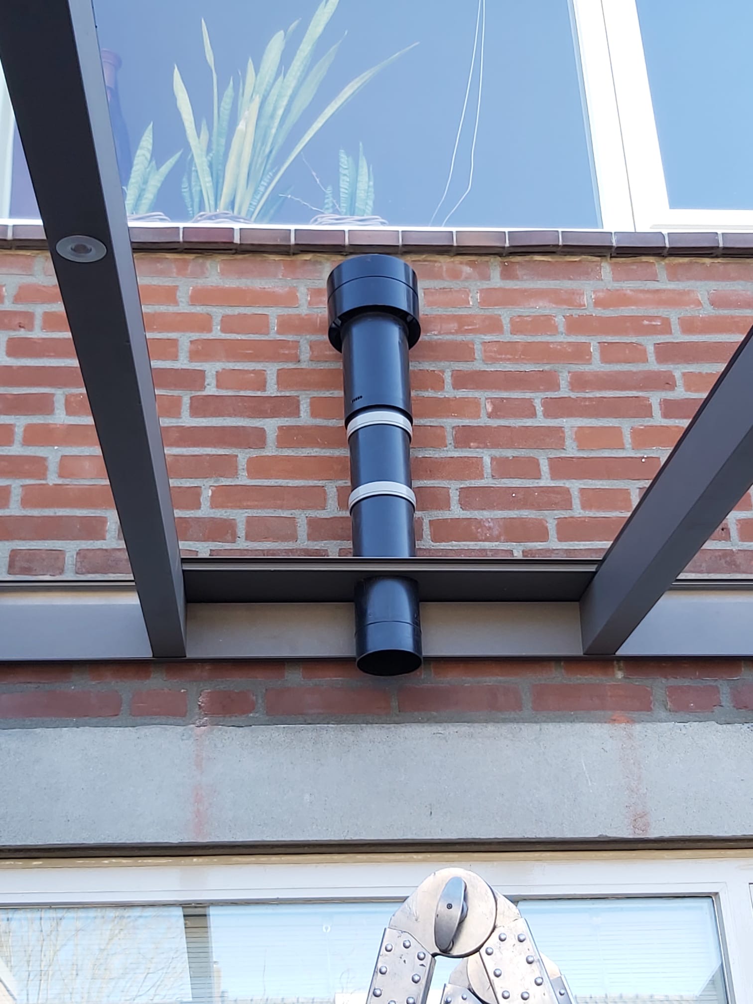 Onder een glazen veranda kan de temperatuur tijdens hete zomerse dagen dusdanig oplopen dat het klimaat oncomfortabel wordt. Daarom vroeg een klant mij of ik voor de veranda, die nog geplaatst moest worden, een idee kon bedenken zodat dit probleem zich niet zou voordoen.