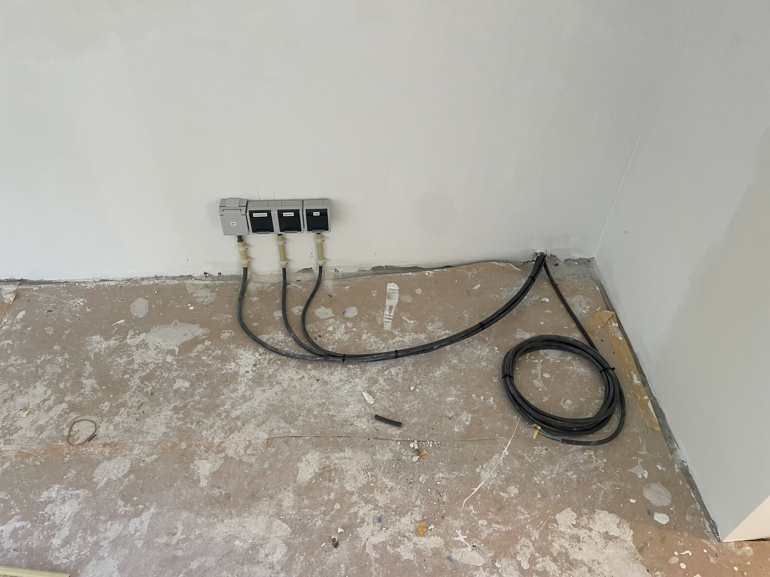 Bij het aanbrengen van het trappengat bleek dat vrijwel alle elektraleidingen, afkomstig van de meterkast, door het verwijderde stuk vloer liepen.